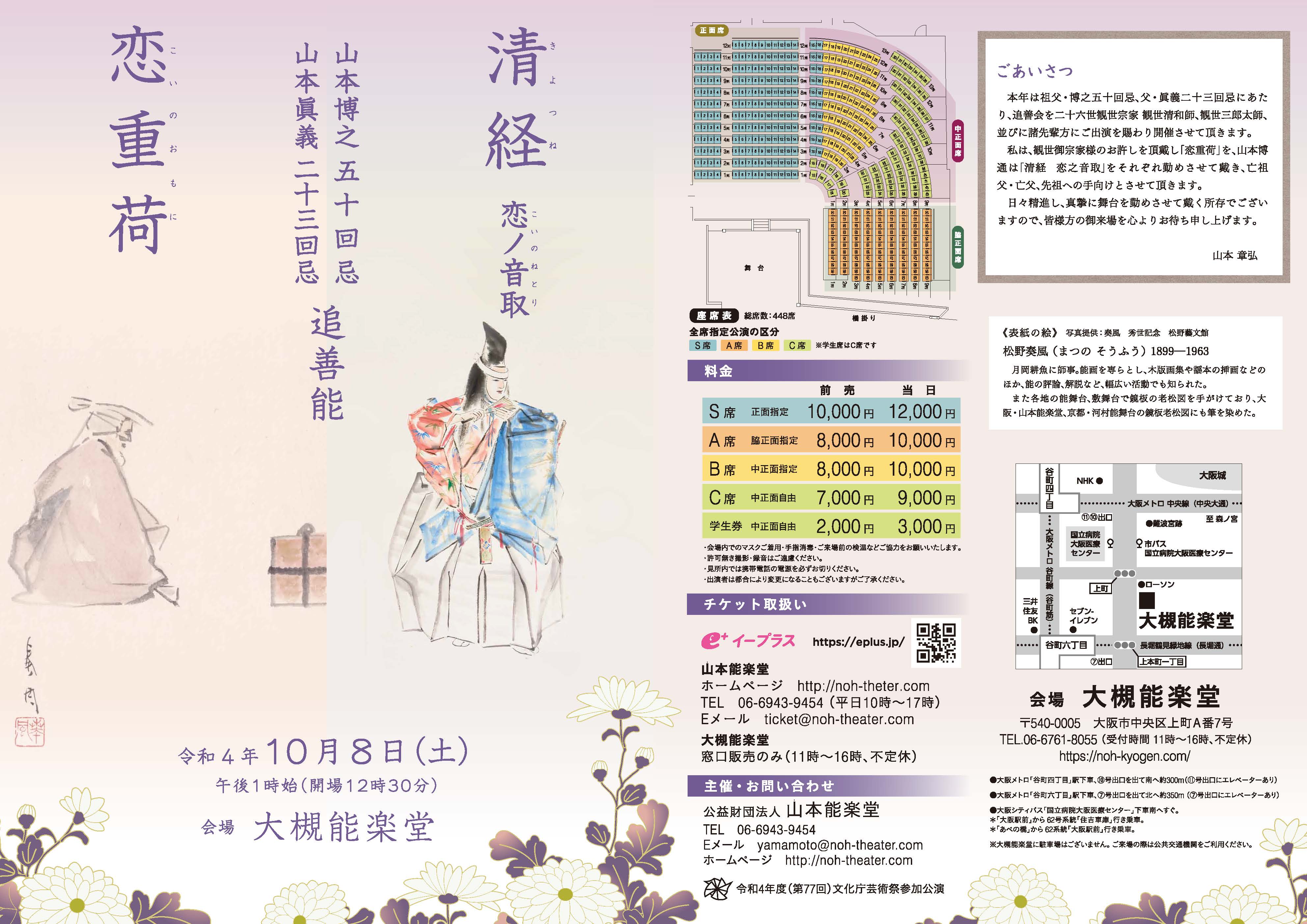【S席完売】山本博之五十回忌 山本眞義二十三回忌 追善能■会場:大槻能楽堂■