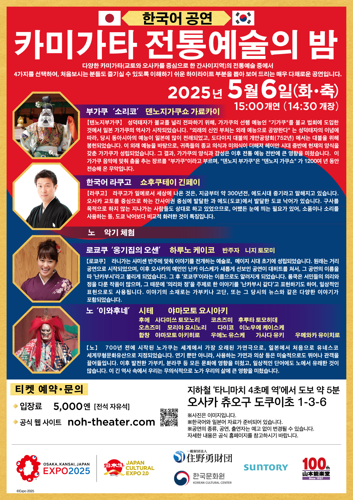 初心者のための上方伝統芸能ナイト 韓国語公演(韓国語字幕付き) 大阪 於 山本能楽堂