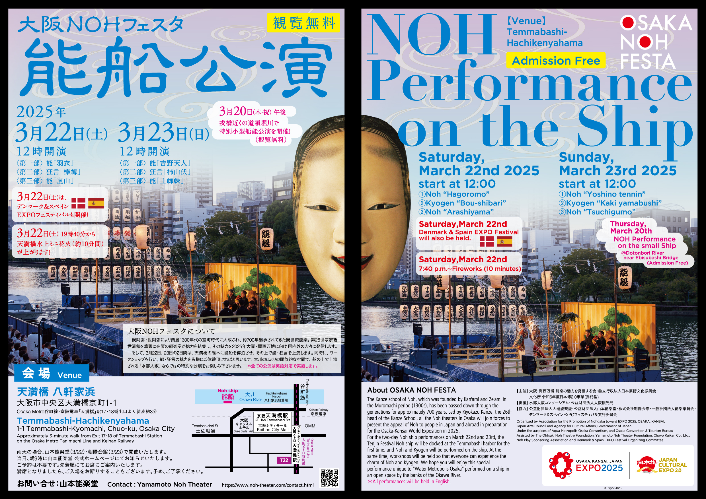 山本能楽堂 能船公演 於 大阪 道頓堀 観覧無料、ご予約不要