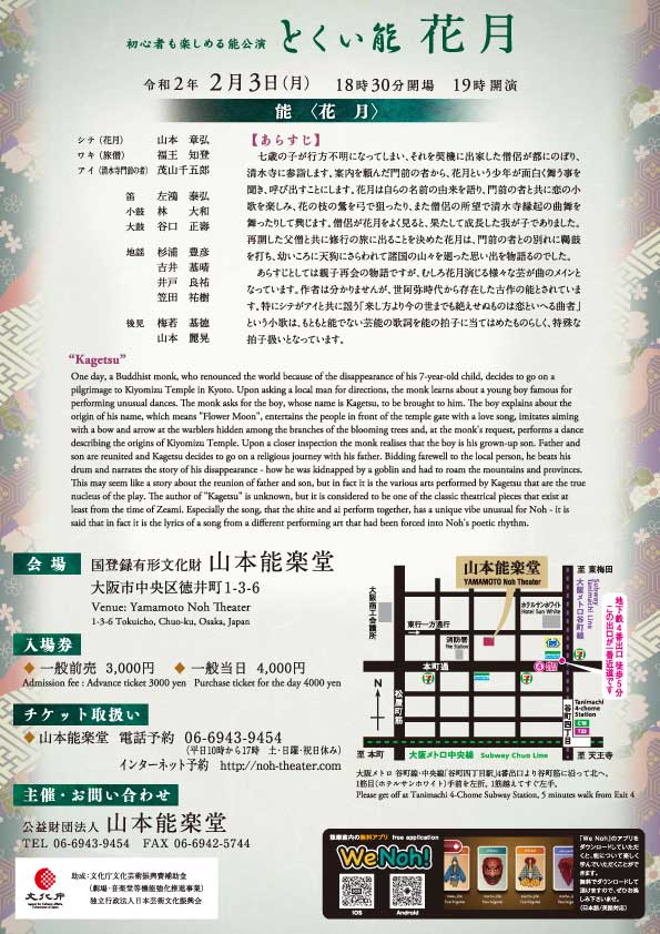 日時:2020-02-03 19:00〜21:00 料金:一般前売3000円 一般当日4000円 主催:山本能楽堂