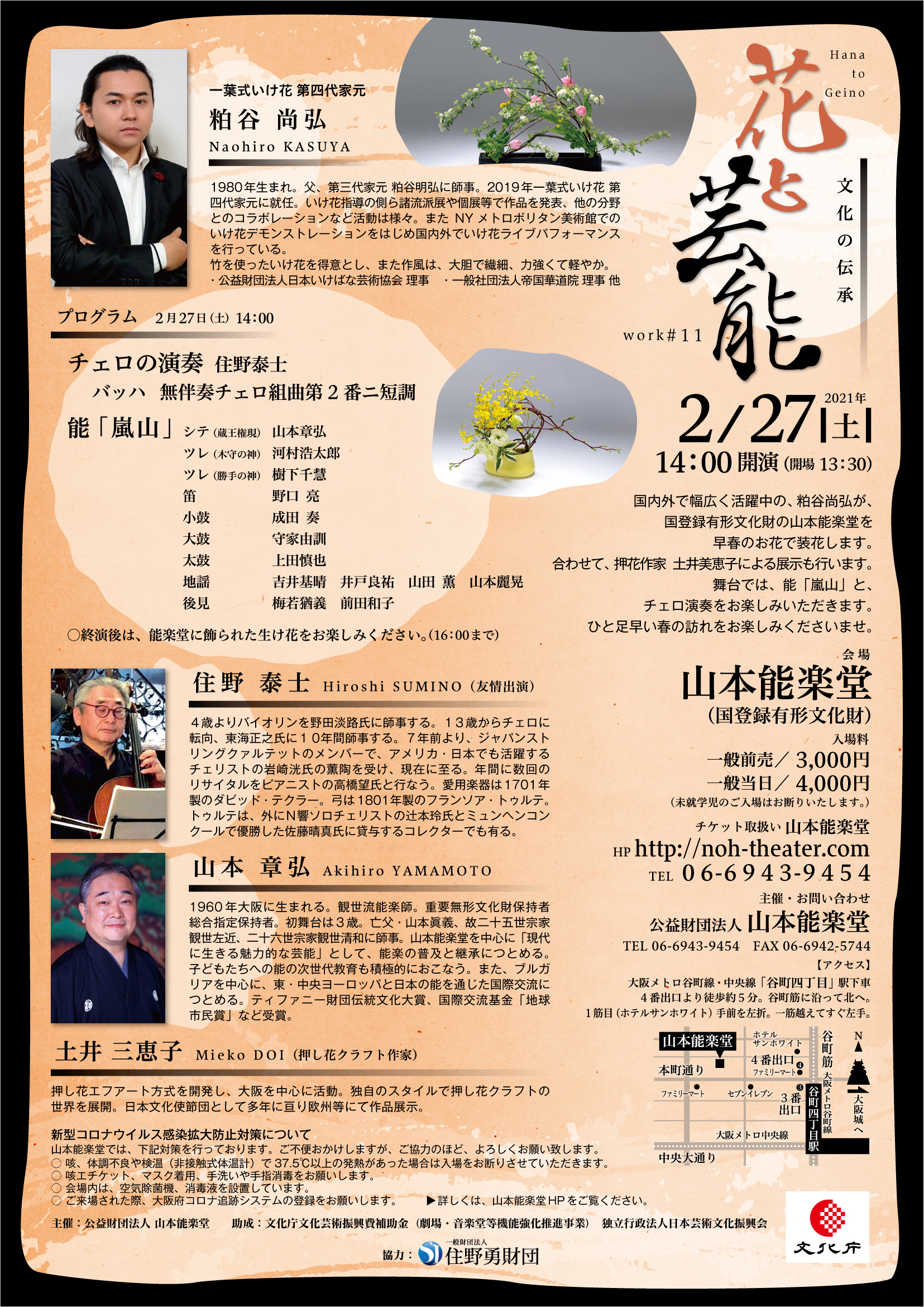 舞台では、能「嵐山」と、チェロ演奏をお楽しみいただきます。