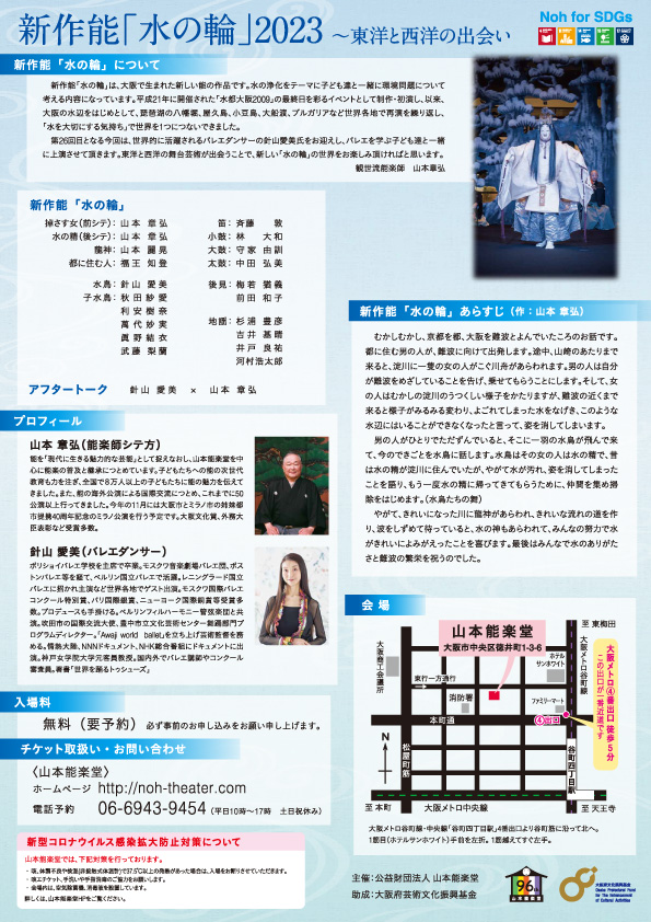 新作能「水の輪」は、大阪で生まれた新しい能の作品。第26回目の今回は、世界的に活躍されるバレエダンサーの針山愛美氏をお迎えし、バレエを学ぶ子供達と一緒に上演。