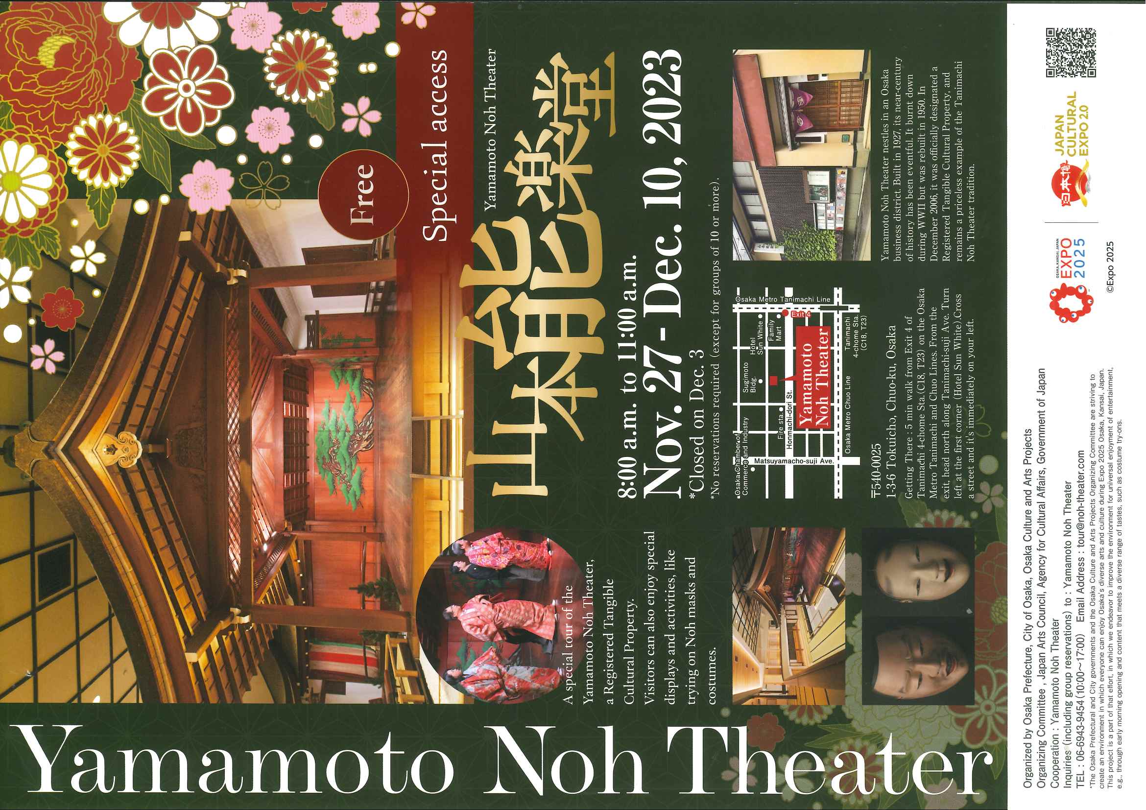 日時:2023-12-08 8:00〜11:00 料金:入場無料 主催:主催:大阪府・大阪市・大阪文化芸術事業実行委員会・独立行政法人日本芸術文化振興会・文化庁 協力:公益財団法人 山本能楽堂