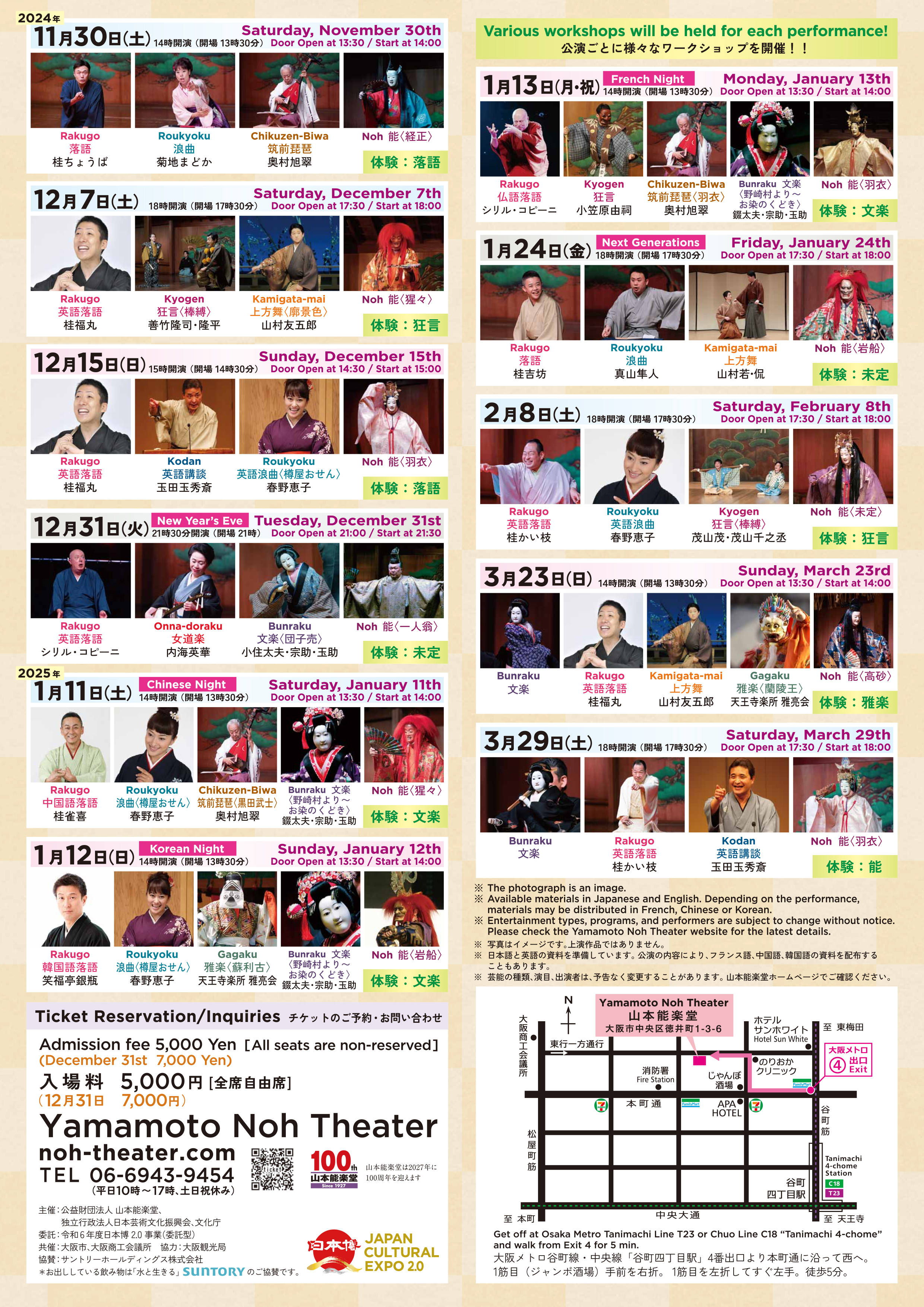 初心者の方や、海外の方にも楽しんでいただけるよう体験も盛り込み、厳選した演目を特別にすべて英語字幕付きで上演します。