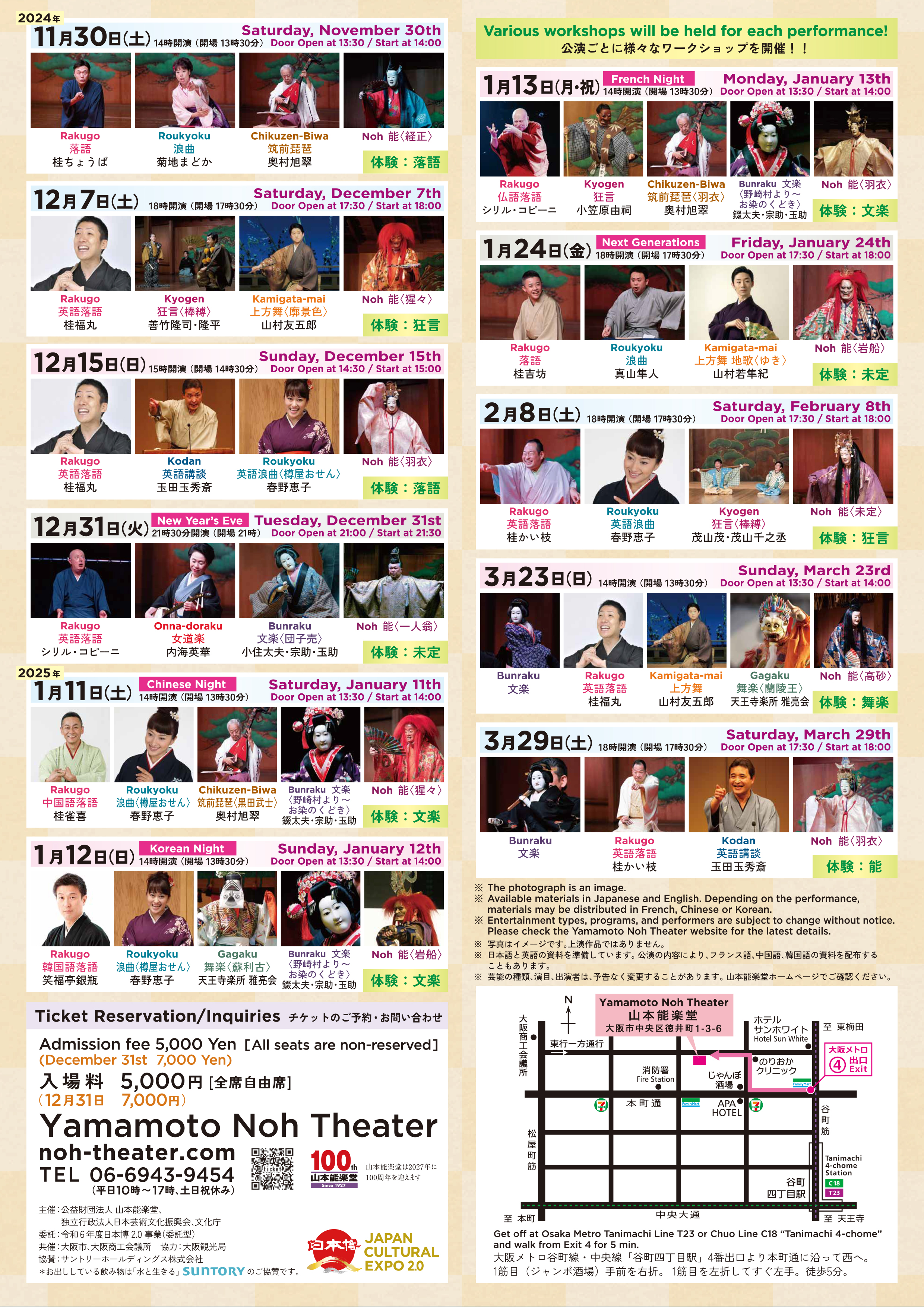 初心者の方や、海外の方にも楽しんでいただけるよう体験も盛り込み、厳選した演目を特別にすべて英語または英語字幕付きで上演します。
