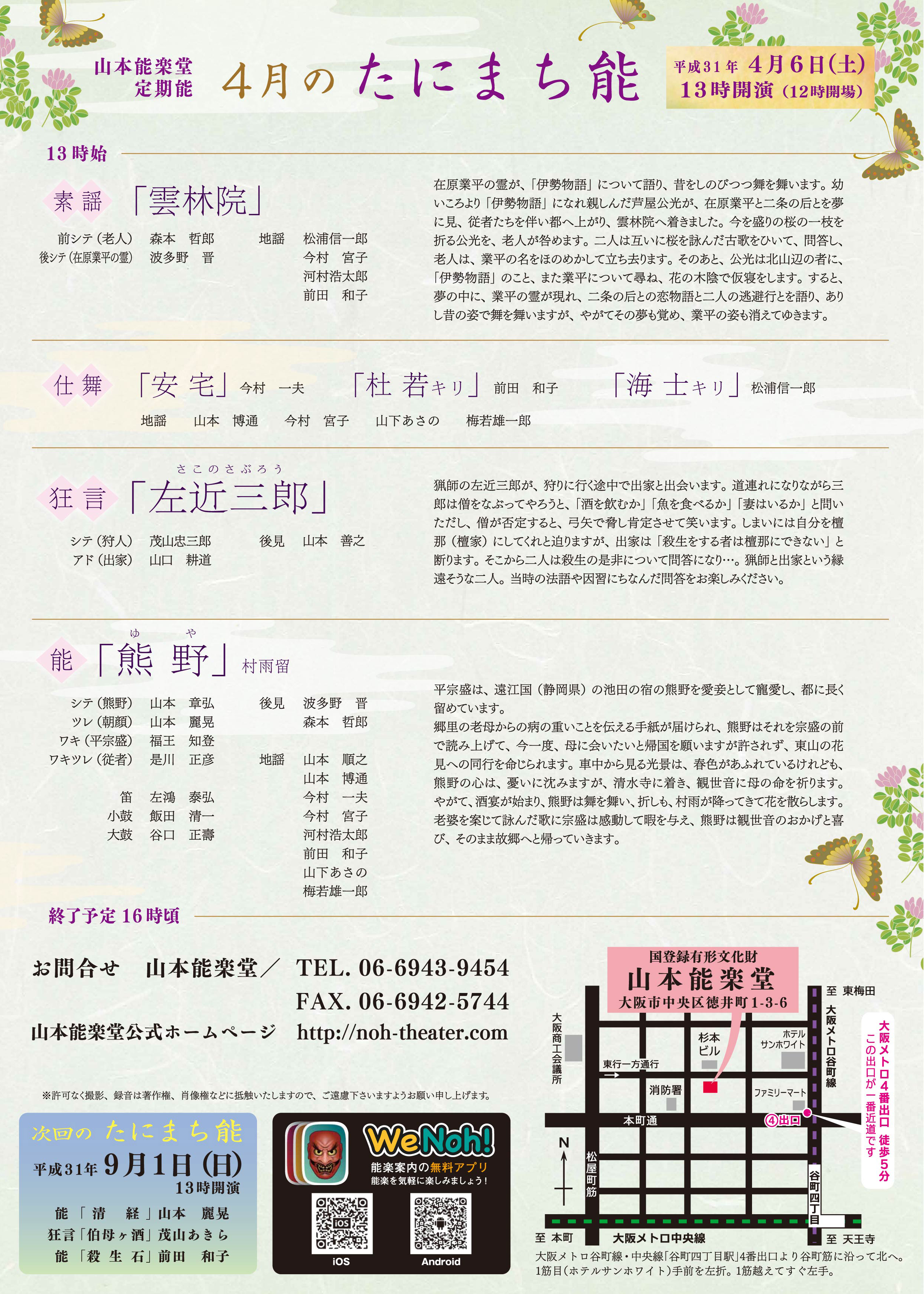 シテ(熊野) 山本章弘 ツレ(朝顔) 山本麗晃 ワキ(平宗盛) 福王知登 ワキツレ(従者) 是川正彦