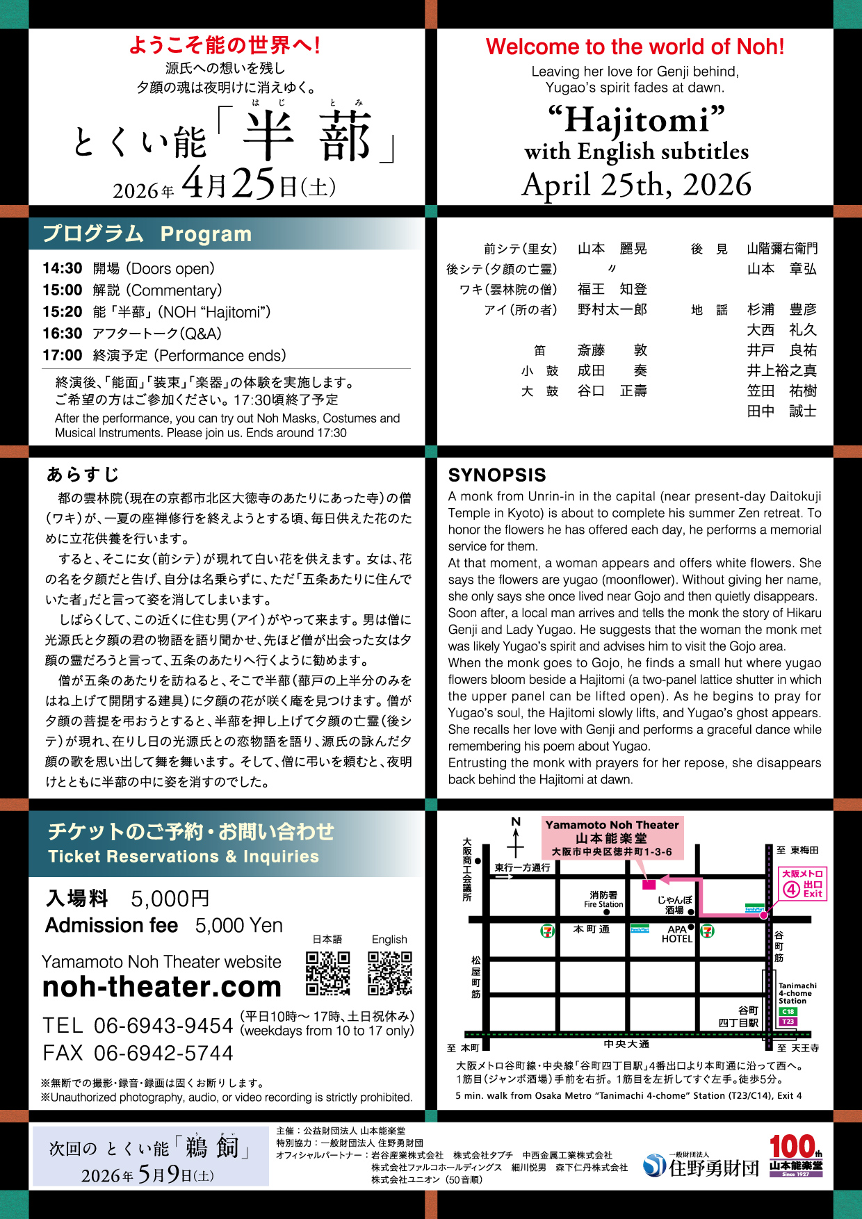 ようこそ能の世界へ!解説と能「半蔀」の上演、能楽体験をお楽しみください。